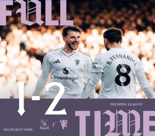 逆轉取勝,曼聯(lián)終結水晶宮英超主場跨賽季12場不敗